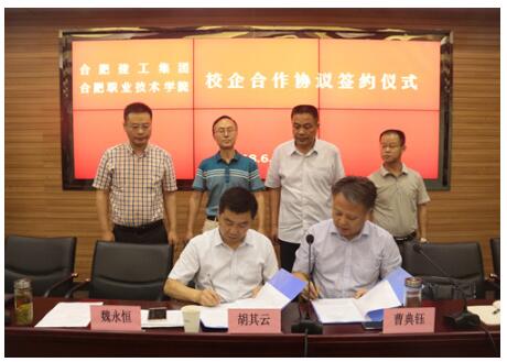 6月29日上午,合肥建工与合肥职业技术学院2018年度校企合作签约仪式在建工一楼5#会议室举行。合肥职业技术学院党委副书记胡其云,建工系院长范家茂、副院长魏永恒,合肥建工副总经理曹典钰、人力资源部副经理(主持工作)石良仕等参加签约仪式.