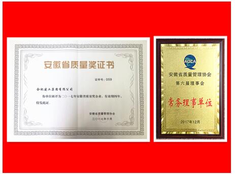 “安徽省质量奖”是由安徽省经信委设立反映省内企业综合素质的最高奖项,主要授予绩效模式管理、质量管理水平和自主创新能力在国内、省内同行业中处于优势地位,并取得显著经济效益和社会效益的企业,合肥建工作为合肥市50强企业和合肥市建筑业综合排名第2名的企业,有着高效的管理水平、严格的质量把关制度、对工程建设品质始终精益求精。