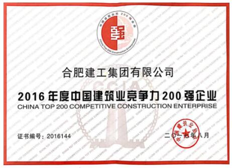 11月26日,2016年度中国建筑业双200强企业发布会在南京召开,合肥建工再度荣获中国建筑业竞争力200强企业荣誉称号,位列第144名。