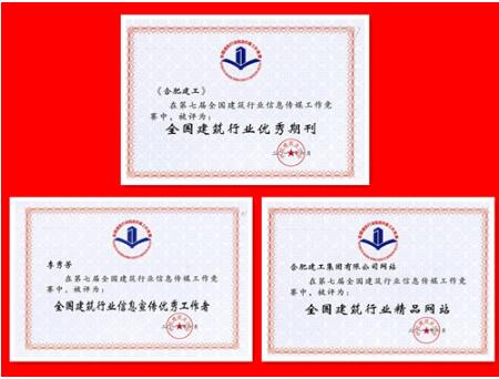 近日,从中国建筑业协会传来喜讯,经第七届全国建筑行业信息传媒工作竞赛评审专家组审定,我公司内刊《合肥建工》荣 获“全国建筑行业优秀期刊” 荣誉称号,公司网站荣获全国建筑行业精品网站”荣誉称号,同时我公司党群工作部李秀芳同志获“全国建筑行业信息宣传优秀工作者” 荣誉称号。
