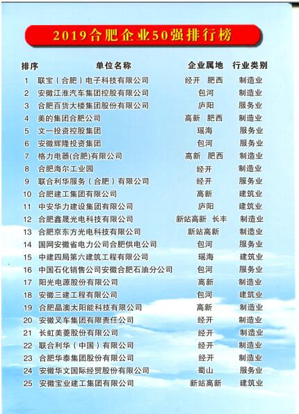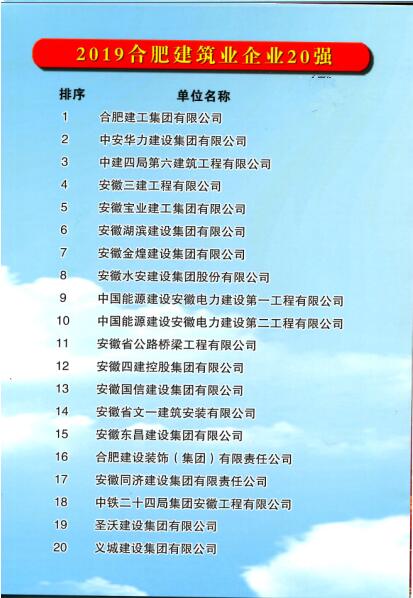 合肥建工荣膺2019合肥企业50强 首登合肥市建筑业企业20强榜首