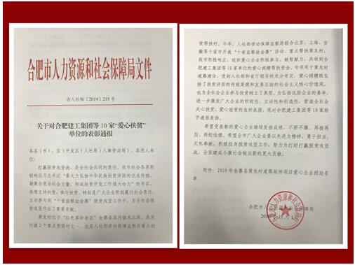 会议还对今年在脱贫攻坚领域做出优异成绩的包括合肥建工在内的10家优秀企业进行了通报表彰。