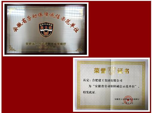 合肥建工荣获安徽省劳动保障诚信示范单位称号