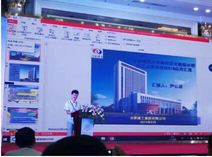 合肥建工信息化中心尹云波在《BIM技术在安徽建筑大学实验综合楼中的应用》主题报告中,以安徽建筑大学实验综合楼项目为背景,从项目的概况、BIM实施策划、BIM实施应用和总结四个方面进行阐述。项目利用BIM技术对施工现场进行三维布置、土方开挖与支护模拟、不同专业间进行错漏碰缺检查、施工进度模拟、模型深化出图以及利用无人机进行倾斜摄影生成实景模型和辅助土方工程量技术等。利用BIM技术进行虚拟建造、维护和管理为项目带来较大的利益,大幅降低项目风险,节省工期和成本,实现项目精细化管理。